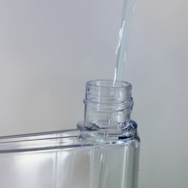To fill and use the Ordo Reusable Mouthwash Bottle, you simply need to pour the Mouthwash Concentrate into the bottle until it reaches the line indicated. After that, the rest of the bottle should be filled with water.