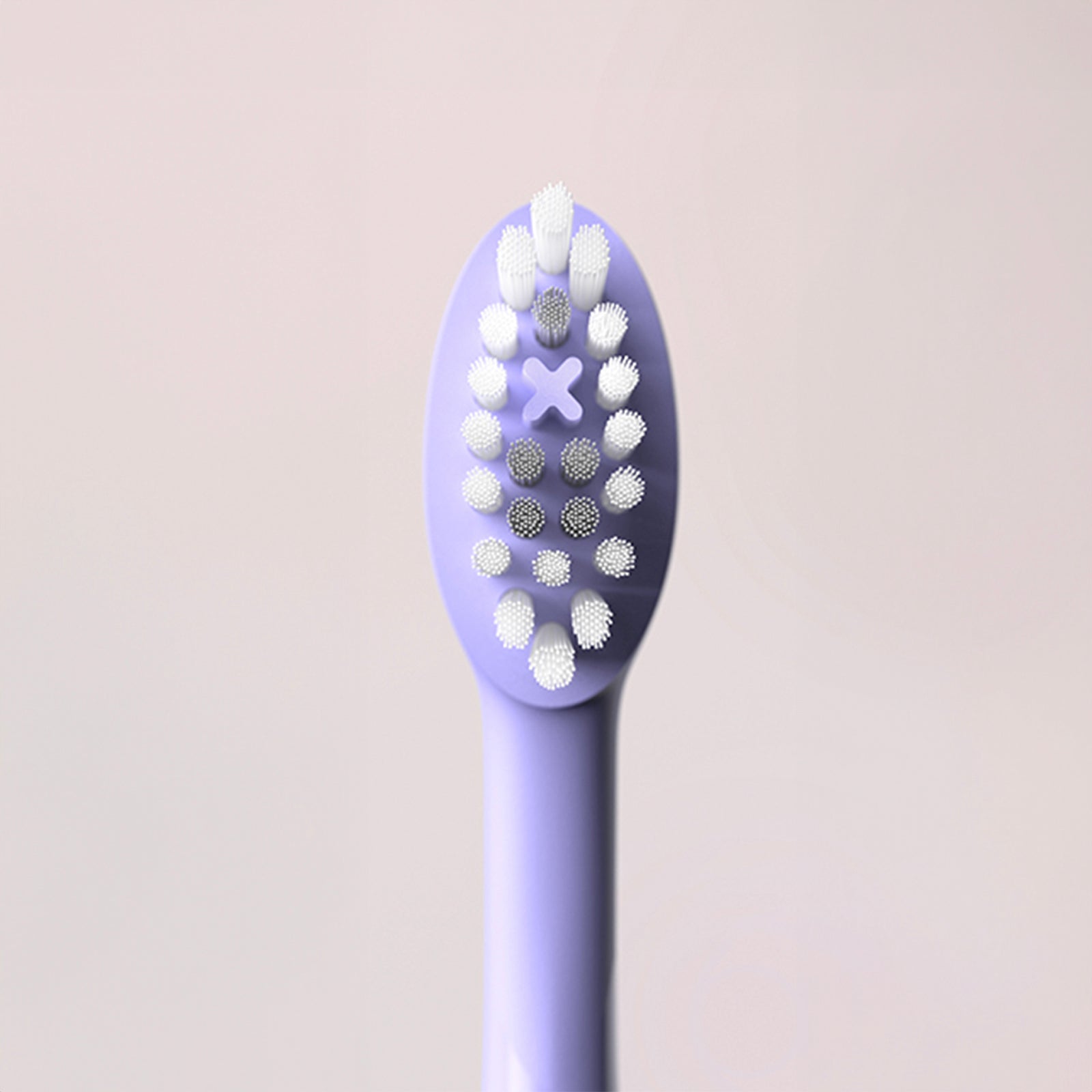 The silicone polishing element is integrated into the brush head. As you brush your teeth, it helps to gently polish and whiten your teeth, giving you a brighter smile.