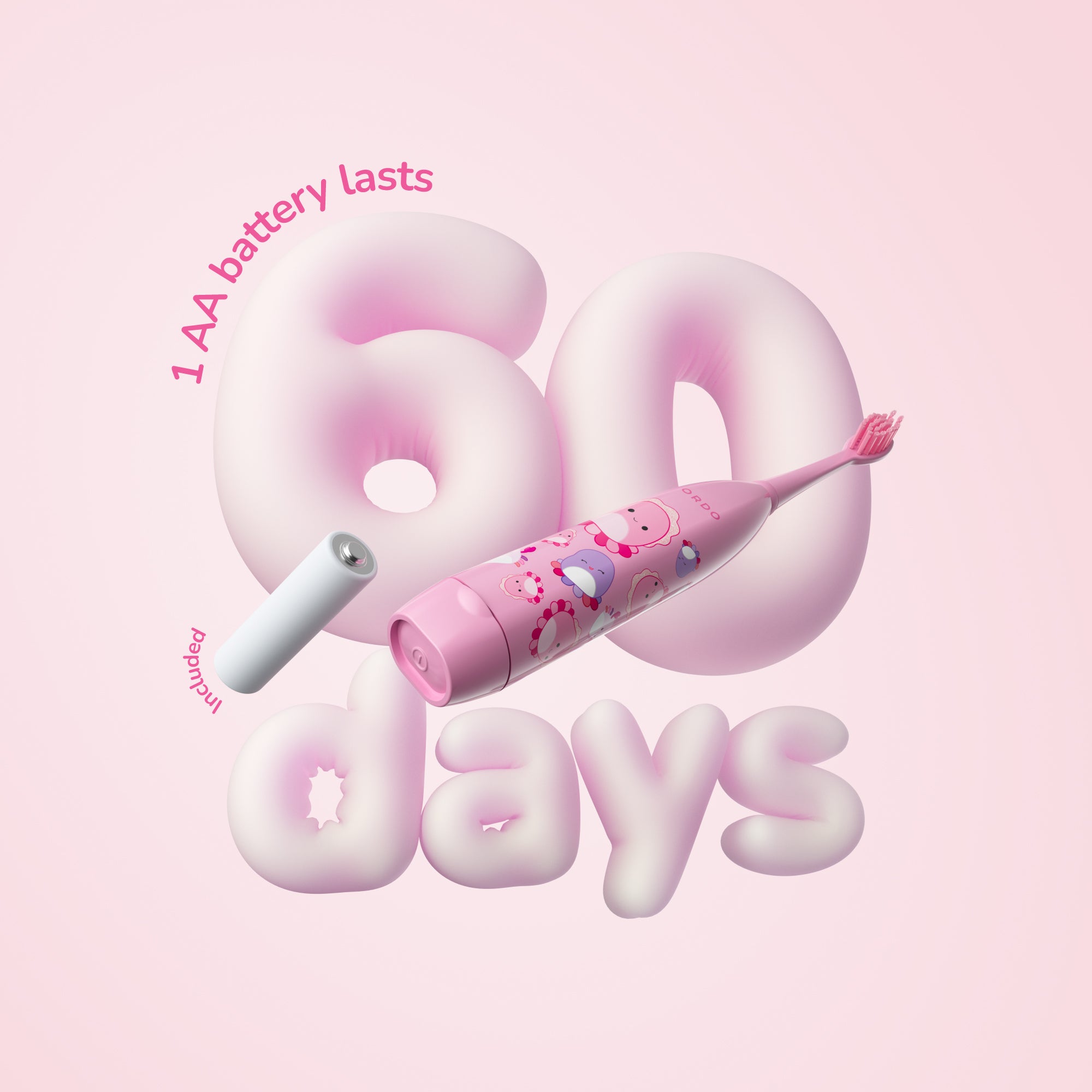 The toothbrush can last up to 60 days on a single AA battery, ensuring long-lasting use without frequent recharging.