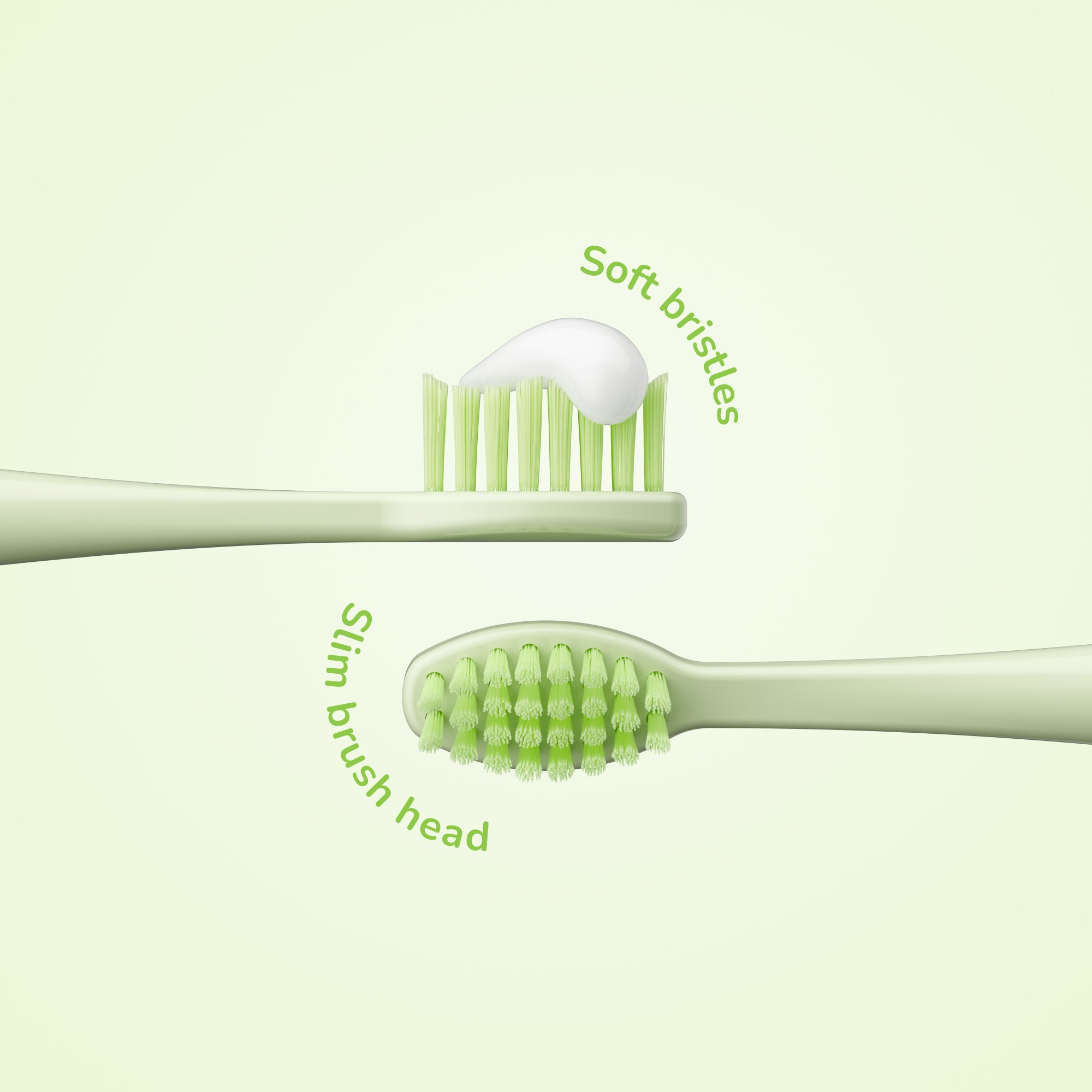 The brush heads are designed with soft bristles to ensure a gentle yet effective clean, making it suitable even for kids with sensitive